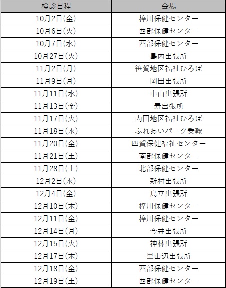(1)指定医療機関 医療機関により異なります。 (2)医師会検査健診センター 令和8年7月1日~令和9年2月27日 (3)支所・出張所 |