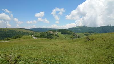 (左)美ヶ原高原の台上にある牧場 (右)美ヶ原高原の県道美ヶ原公園線