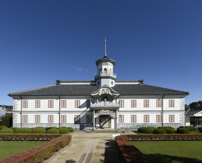 続いては、学都松本の象徴「国宝旧開智学校校舎」。明治9年(1876)に竣工した擬洋風校舎で2019年9月30日に近代学校建築として日本で初めて国宝指定を受けました。校舎のシンボルである車寄を飾る天使と竜の彫刻は、世界にも大変めずらしい独創的なデザインが特徴です。館内では江戸時代から現代までの教育資料を展示し、開智学校を中心とした松本、日本の近代教育の歩みを伝えています。外観はもちろん校舎内にも入ることができて、和風と洋風が混じりあったような擬洋風建築の独特の美しさや、木造校舎が持つノスタルジックな雰囲気を味わうことができます。